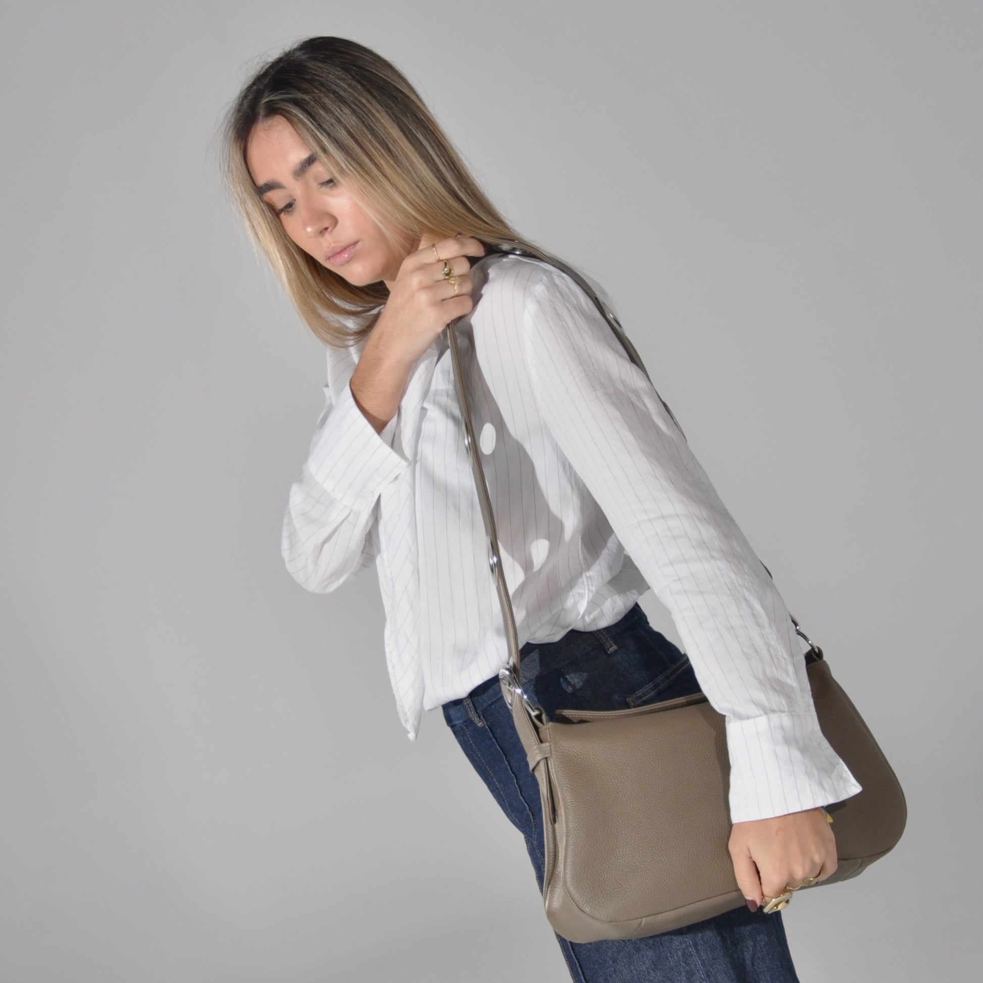 En su tono caqui, es un bolso que llega para quedarse: una pieza versátil que acompaña tu ritmo y eleva cualquier look con una naturalidad sencilla e impecable. Combínalo con la correa Rodeo Soft para un look diferente.